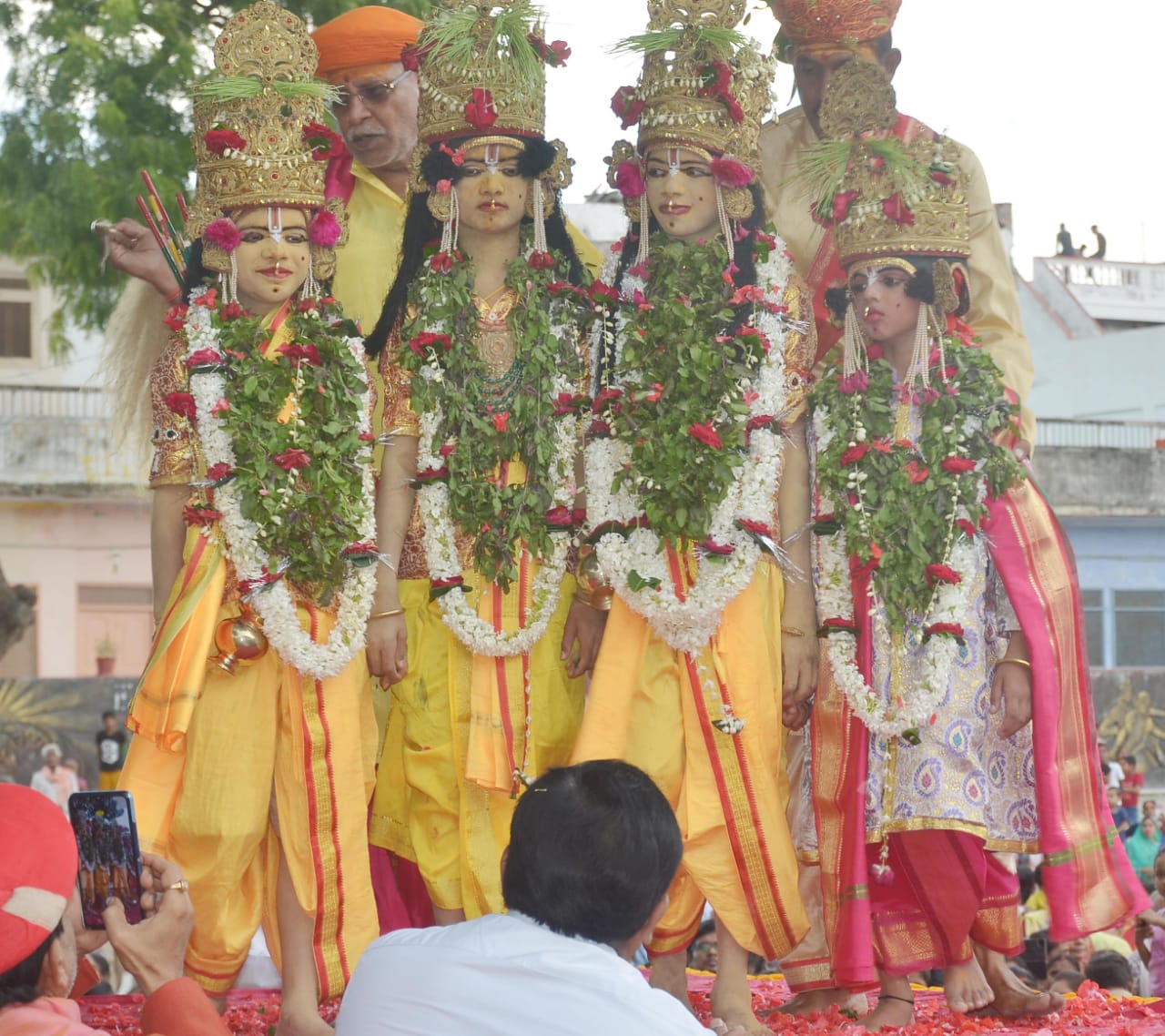 पुष्पक विमान से चारों भाइयों को उतारने के बाद फिर आरती हुई और इसी के साथ लीला का समापन किया गया। इसके पहले नाटी इमली मैदान में होने वाली लीला को देखने के लिए लोगों का रेला अपरान्ह से ही उमड़ने लगा था । मैदान के साथ आसपास के घरों की छतों पर भी लोगों की भीड़ लीला देखने के लिए जुटी थी। मेला क्षेत्र में सुरक्षा का व्यापक प्रबंध किया गया था।