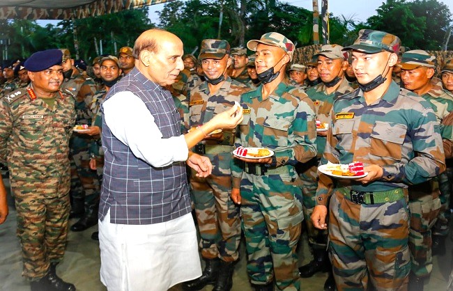 – असम के दिनजान में सेना के फॉर्मेशन का दौरा करके सैनिकों से मिले राजनाथ सिंह