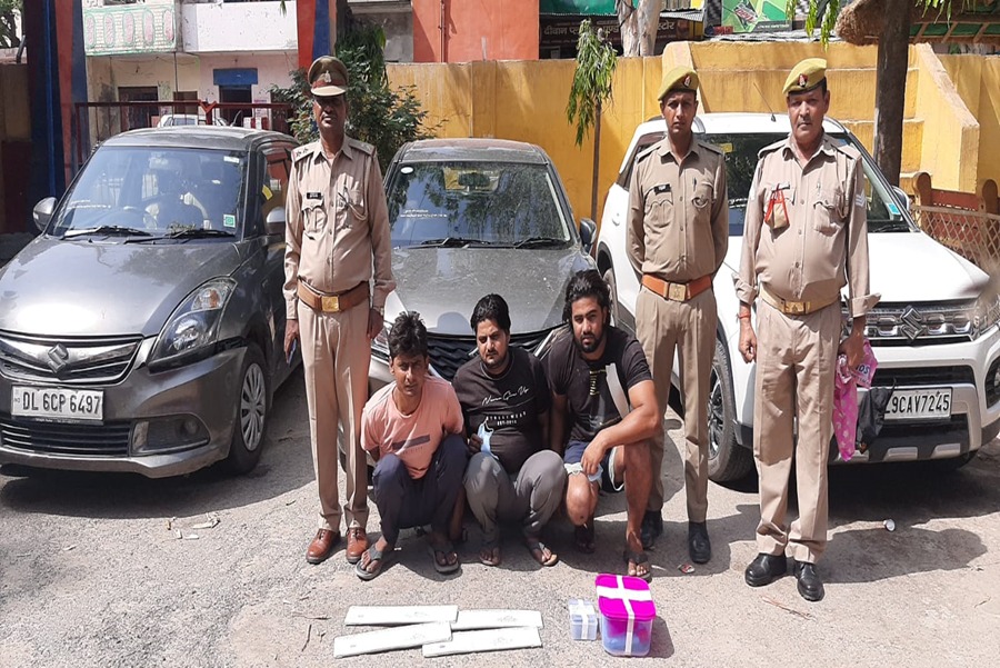 एसपी देहात केशव कुमार ने बताया कि थाना परीक्षितगढ पुलिस ने द्वारा तीन अन्तरराज्यीय वाहन चोरों को गिरफ्तार किया गया है। उनके कब्जे से दिल्ली से चुराई गई 02 विटारा ब्रेजा कार, 01 स्विफ्ट डिजायर कार, 01 बलेनो कार, जीपीएस, जैमर, स्कैनर आदि सामान बरामद किया। ये बदमाश चोरी की कारों की नंबर प्लेट बदल कर प्रयोग कर रहे थे। उनके पास से कई फर्जी नंबर प्लेट भी बरामद हुई है। पकड़े गए वाहन चोरों के नाम भूरवा उर्फ भूरा, निवासी जसौरा मुंडाली मेरठ, असलम निवासी आचरु कलां थाना शिकारपुर बुलंदशहर और विनीत निवासी ग्राम खेडा बलरामपुर थाना परतापुर जिला मेरठ है। इन बदमाशों के खिलाफ गाजियाबाद, हापुड़, अमरोहा, मेरठ, बिजनौर जनपदों में भी संगीन धाराओं में मुकदमे दर्ज है। बदमाशों को पकड़ने वाली टीम में उप निरीक्षक गोपाल वर्मा, शाकिर, राजकुमार, कपिल भाटी, गोपाल सिंह, ज्ञानेंद्र मलिक, नवीन कुमार, अजय कुमार शामिल रहे।