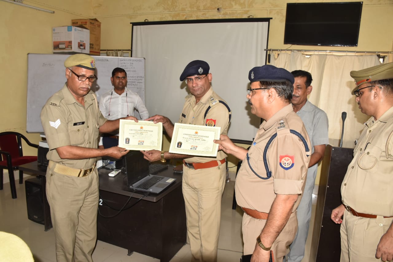 प्रमाण-पत्र वितरण के दौरान प्रभारी निरीक्षक डायल यूपी-112 जगदंबा प्रसाद दुबे, उनि जहीर अहमद डायल यूपी-112, ट्रैनर एमडीएसएल ए.एन. सिंह व शैलेन्द्र यादव मौजूद रहे। वरिष्ठ पुलिस अधीक्षक द्वारा प्रशिक्षण प्राप्त कर चुके पुलिस कर्मियों को पूर्ण निष्ठा एवं ईमानदारी के साथ कर्तव्यपालन हेतु प्रेरित किया गया।