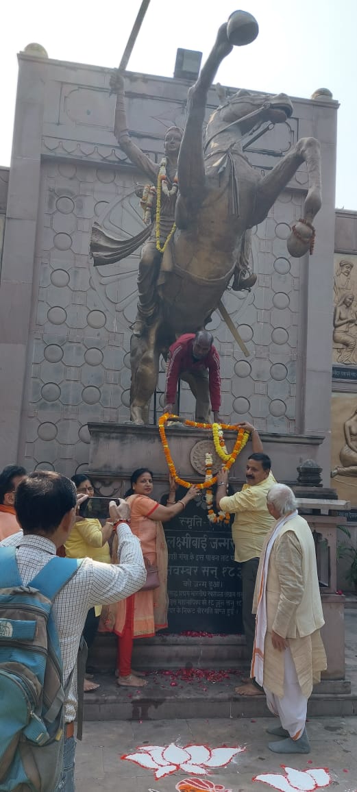 वाराणसी(हि.स.)। महारानी लक्ष्मीबाई की 194वीं जयंती उनकी जन्मस्थली भदैनी में शनिवार को धूमधाम से मनाई गई। सामाजिक संस्था जागृति फाउंडेशन और महारानी लक्ष्मीबाई जन्मस्थली स्मारक समिति के संयुक्त तत्वावधान में आयोजित कार्यक्रम में बतौर मुख्य अतिथि श्रीसंकट मोचन मंदिर के महंत प्रो.विश्वम्भर नाथ मिश्र, विशिष्ट अतिथि ग्वालियर महारानी लक्ष्मीबाई के समाधि स्थल से आये मोहन अग्रवाल, उनकी पत्नी पूनम अग्रवाल, बीएचयू राजनीति शास्त्र विभाग के पूर्व डीन प्रो. कौशल किशोर मिश्र एवं फाउंडेशन के महासचिव रामयश मिश्र ने महारानी की प्रतिमा पर श्रद्धासुमन अर्पित किया।