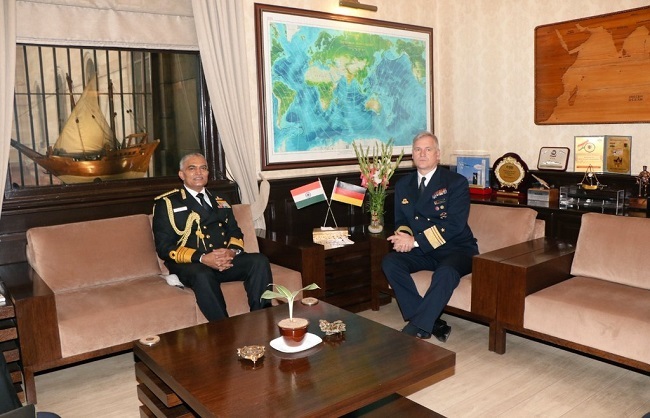 नई दिल्ली (हि.स.)। जर्मन नौसेना के प्रमुख वाइस एडमिरल अचिम शॉनबैक इस समय भारत की यात्रा पर हैं। उन्होंने नई दिल्ली में नौसेना प्रमुख एडमिरल आर. हरि कुमार से मुलाकात करके दोनों नौसेनाओं के बीच सहयोग को और मजबूत करने के साथ ही इंटरऑपरेबिलिटी बढ़ाने के तरीकों पर चर्चा की। वायुसेना प्रमुख और उप थल सेनाध्यक्ष से भी मुलाक़ात में द्विपक्षीय रक्षा सहयोग के पहलुओं पर चर्चा हुई। इस बीच शुक्रवार को जर्मनी का युद्धपोत बायर्न एफ-217 मुंबई तट पर पहुंचा जहां जर्मन राजदूत ने मुक्त समुद्री मार्ग की वकालत करते हुए प्रशांत क्षेत्र में शांति को जरूरी कदम बताया।