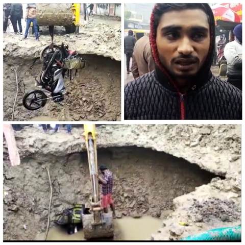 विजय कुमार मौर्या ने बताया कि बड़ी मुश्किल से गड्ढे से वह तैरकर बाहर आया। इसके बाद डायल 112 पर फोन कर सूचना दी। उसका कहना है कि फोन के थोड़ी देर बाद ही पुलिस मौके पर आ गई। डायल 112 के पुलिसकर्मियों ने उसकी मदद की और पास से कपड़े दिलाए। यही नहीं, भीषण ठंड में पूरी तरह भीग चुके डिलीवरी ब्वॉय को सर्दी न लगे, इसके लिए पुलिसकर्मियों ने आग का भी इंतजाम किया और उसे राहत दिलाई। इसके बाद शनिवार को पहले गड्ढे से पानी निकाला गया और जेसीबी की मदद से उसकी बाइक निकाली गई।