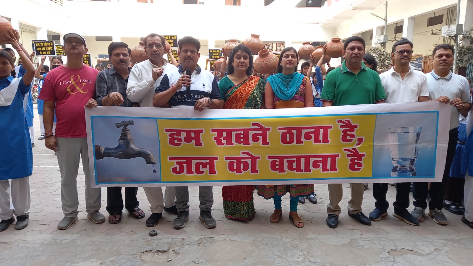 छात्राओं ने हाथ में खाली घड़ा और स्लोगन लिखी तख्तियां लेकर पानी की बर्बादी रोकने के लिए संदेश दिया। छात्राओं का कहना था कि सार्वजनिक स्थलों पर नलों की टोटियां अक्सर खराब हो जाती हैं और पेयजल बहता रहता है,यह ठीक नहीं है। अगर टोटियों को ठीक करा दिया जाए तो काफी जल की बचत हो सकती है।