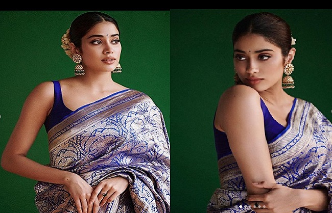 बॉलीवुड की धड़क गर्ल जान्हवी कपूर इन दिनों अपनी आगामी फिल्म ‘मिली’ के प्रमोशन में व्यस्त हैं। इस बीच जान्हवी ने थोड़ा सा समय निकालकर सोशल मीडिया पर फैंस के साथ अपनी कुछ तस्वीरें साझा की हैं। तस्वीरों में जान्हवी बिलकुल साउथ इंडियन स्टाइल में नजर आ रही हैं। जान्हवी रॉयल ब्लू कलर की सिल्क साड़ी पहनी हुई है। इसके साथ ही उन्होंने बालों में गजरा और माथे पर बिंदी भी लगाईं है।