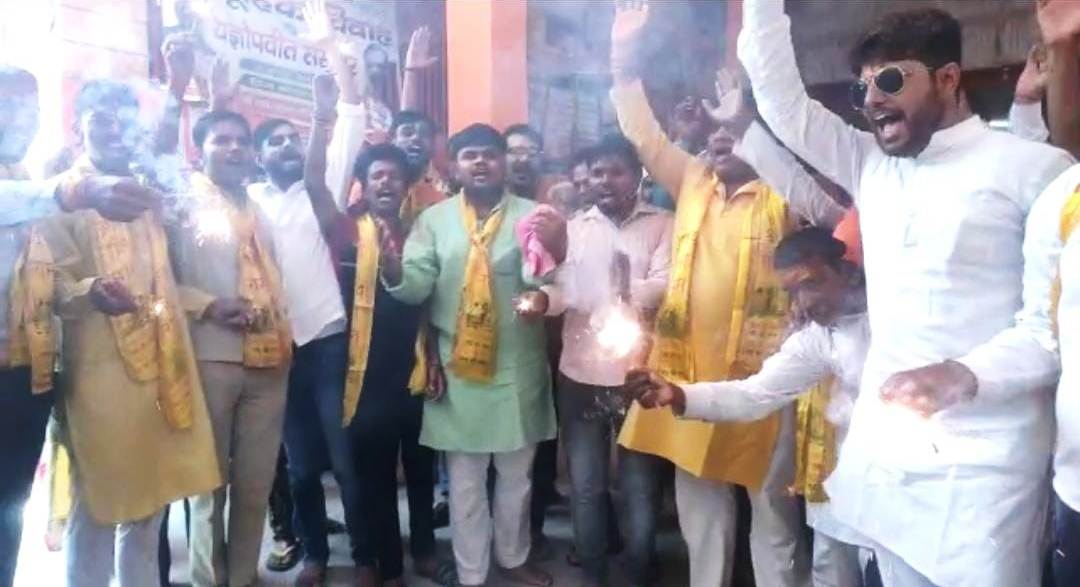 कार्यकर्ताओं ने मंदिर परिसर में जमकर की आतिशबाजी और बम-बम भोले के जयकारे लगाते हुए खुशी जाहिर की। इस मौके पर सैकड़ों कार्यकर्ताओं ने मंदिर में आने वाले सभी भक्तों को मिठाई भी खिलाकर बधाई दी।