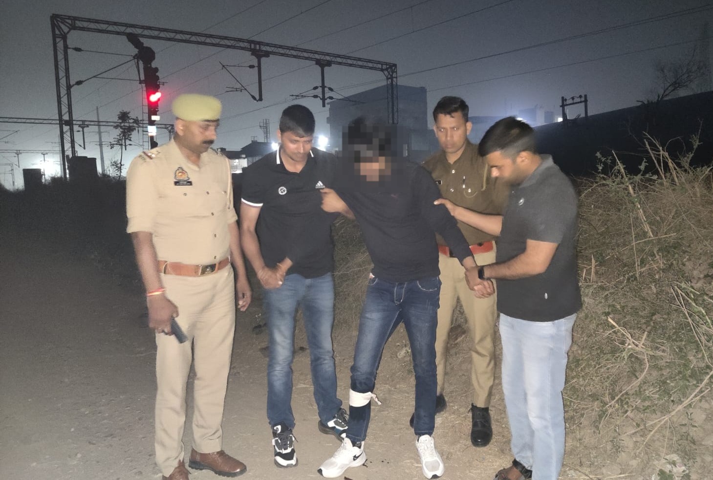 एसीपी मुरादनगर ने बताया कि सूचना मिली कि मैनापुर रोड पर मोटरसाइकिल पर कुछ बदमाश जा रहे हैं। पुलिस ने वहां पर चेकिंग शुरू कर दी। सभी एक मोटरसाइकिल पर करते दिखाई दिए जिन्हें पुलिस ने रुकने का इशारा किया। यह लोग रुके नहीं और पुलिस पर फायरिंग करते हुए भागने लगे। पुलिस ने कुछ ही दूरी पर जाकर दोनों को घेर लिया। इस पर एक बदमाश ने पुलिस पर फायरिंग शुरू कर दी। पुलिस ने भी जवाबी फायरिंग की जिसमें एक बदमाश घायल होकर गिर पड़ा और उसे दबोच लिया। इस दौरान उसका साथी फरार हो गया। गिरफ्तार बदमाश का नाम आयूष त्यागी उर्फ नवाब है। यह कारमल नगर म.न.-06 माउंट कारमल स्कूल के पास कस्बा व थाना मुरादनगर का निवासी है। उसका साथी अभियुक्त बादल वर्मा पुत्र जितेन्द्र वर्मा अंधेरे का लाभ उठाकर भाग गया। उसके कब्जे से एक मोटरसाइकिल व तमंचा बरामद हुआ है।