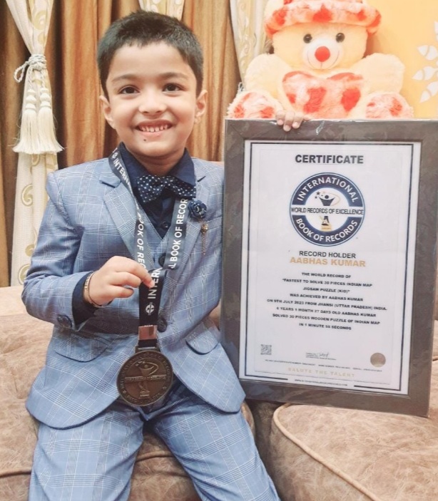 झांसी(हि.स.)। विश्व में झांसी का नाम अभी तक वीरांगना महारानी लक्ष्मीबाई के शौर्य, दद्दा ध्यानचंद की हॉकी व भक्त प्रह्लाद की नगरी एरच के लिए विशेष रूप से जाना जाता है। अब झांसी के 06 वर्षीय छात्र आभास कुमार ने जिग्सा पजल्स में भारत के नक्शे का पजल्स मात्र 1.55 सेकेंड में बनाकर विश्व रिकार्ड बना डाला।