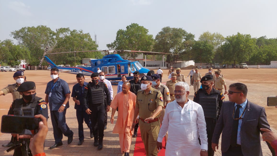 झांसी(हि. स.)। मुख्यमंत्री योगी आदित्यनाथ का उड़न खटोला शनिवार को 4 बजे पुलिस लाइन स्थित हेलीपैड पर उतरा। वहां उनका पुष्प गुच्छ भेंटकर स्वागत किया गया। उसके बाद पूरी सुरक्षा व्यवस्था के बीच उनका काफिला सर्किट हाउस के लिए निकल पड़ा।