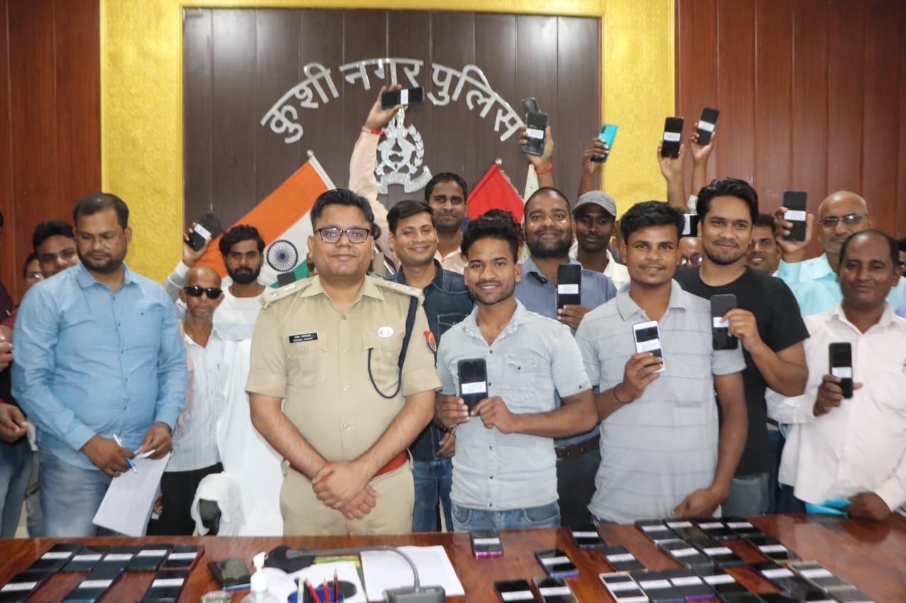 कुशीनगर(हि. स.)। कुशीनगर जिले के भिन्न-भिन्न क्षेत्रों में रहने वाले 70 लोगों के गायब हुए या चोरी गए मोबाइल एंड्रॉयड फोन पुलिस ने बरामद किए हैं। एसपी धवल जायसवाल ने पुलिस कार्यालय में सोमवार को बरामद फोन धारकों को सौंप दिया।