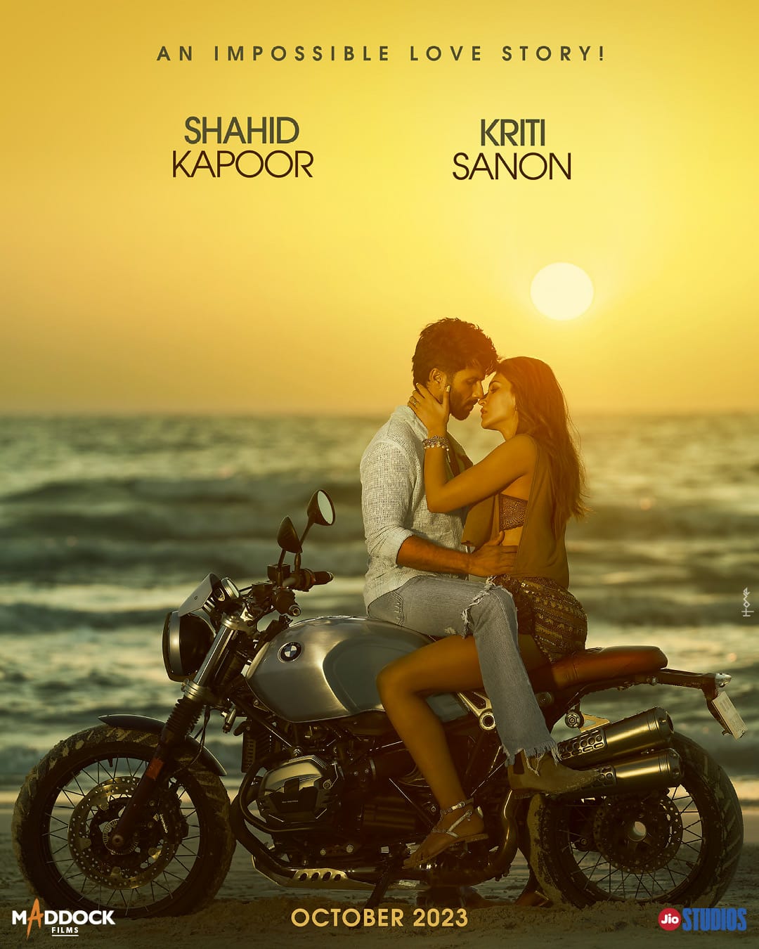 इस तस्वीर में शाहिद कपूर और कृति सनोन की नई नई जोड़ी सिजलिंग हॉट केमिस्ट्री दिखाई दे रही है। यह जोड़ी एक साथ शानदार दिखती है। शाहिद और कृति दोनों बाइक पर काफी रोमांटिक अंदाज में एक-दूसरे के आमने-सामने बैठे हैं। अभिनेता ने ब्लू डेनिम और बूट्स के ऊपर सफेद शर्ट पहनी है, जबकि कृति ने शॉर्ट स्कर्ट और क्रॉप टॉप पहना है। सूर्यास्त के बैकग्राउंड के बीच, अभिनेताओं को एक अंतरंग मुद्रा में देखा जा सकता है। तस्वीर से पता चलता है कि बिना शीर्षक वाली फिल्म आगामी अक्टूबर में सिनेमाघरों में उतरेगी। इससे भी ज्यादा दिलचस्प है इसकी टैगलाइन, जो कहती है: ”एक असंभव प्रेम कहानी”।