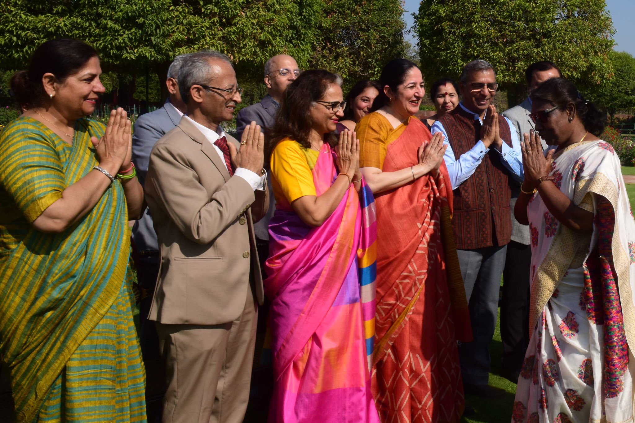 नई दिल्ली (हि.स.)। राष्ट्रपति द्रौपदी मुर्मू के विशेष आमंत्रण पर दिल्ली उच्च न्यायालय के मुख्य न्यायाधीश न्यायमूर्ति सतीश चंद्र शर्मा और दिल्ली उच्च न्यायालय के अन्य न्यायाधीशों ने राष्ट्रपति भवन के ‘अमृत उद्यान’ का रविवार को भ्रमण किया।