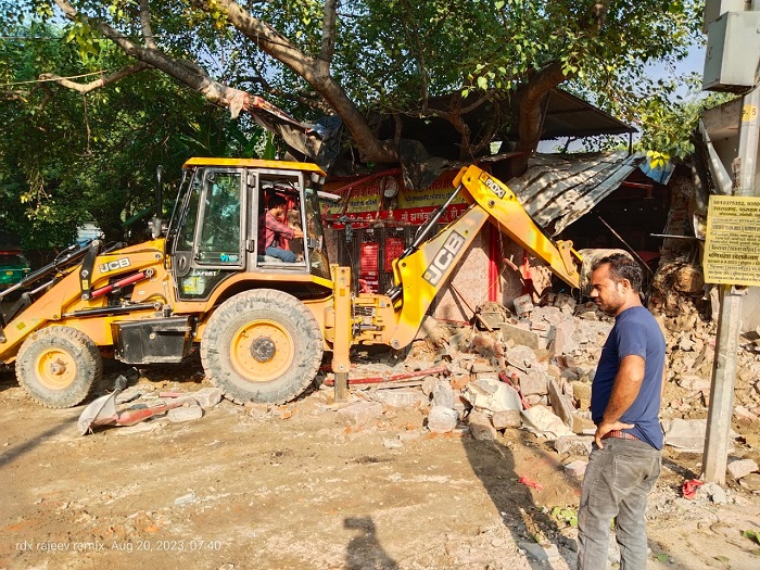 नई दिल्ली (हि.स.)। लोक निर्माण विभाग ने आज (रविवार) सुबह राष्ट्रीय राजधानी के झंडेवाला क्षेत्र में रानी झांसी रोड पर अतिक्रमण विरोधी अभियान के तहत पिपलेश्वर हनुमान मंदिर और मामू-भांजे मजार की सामने की दीवार को ध्वस्त कर दिया।