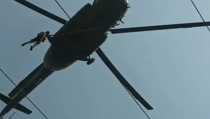 एअर ट्रॉली में फंसे 48 श्रद्धालु, रस्सियों के सहारे हवा में लटककर ऑपरेशन चला रहे कमांडो