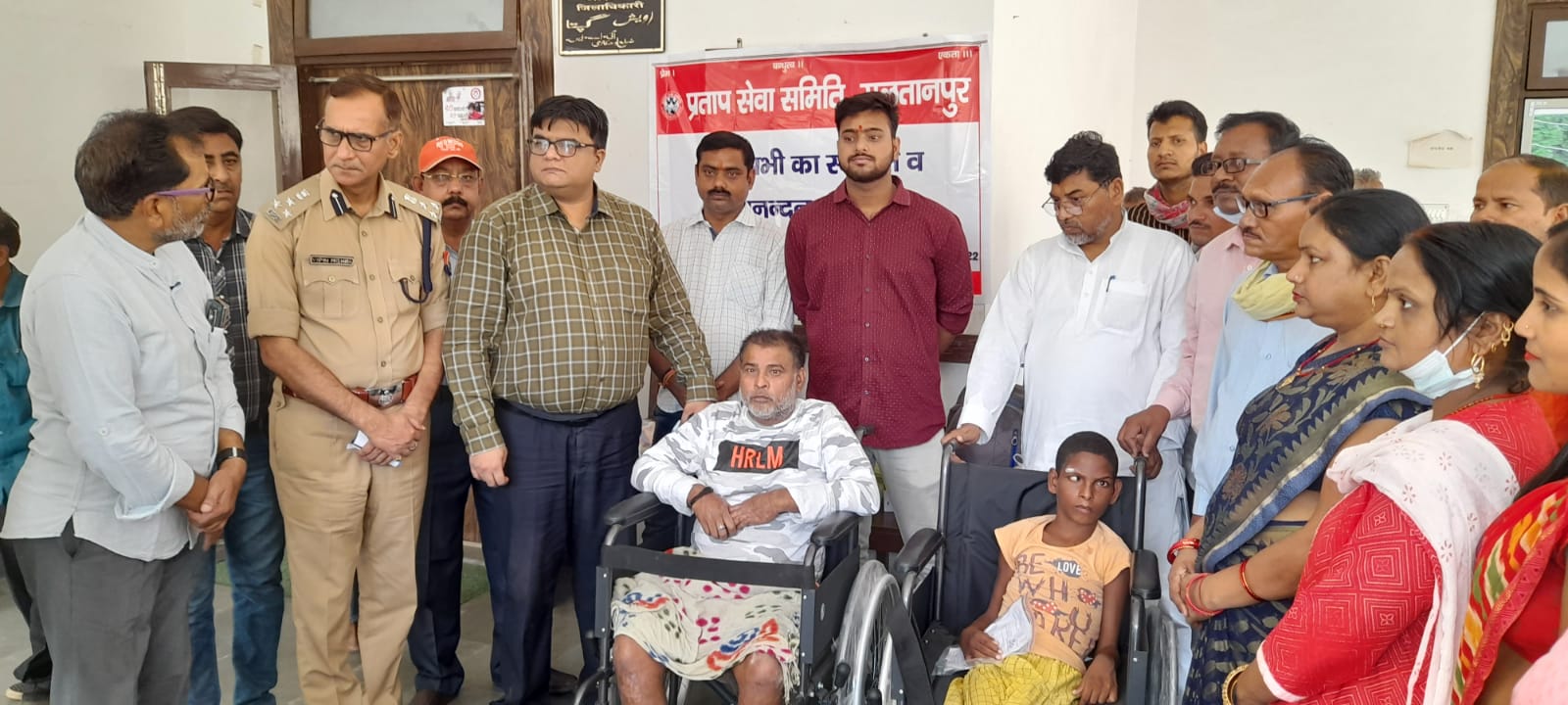 सुलतानपुर (हि.स.)। जिलाधिकारी रवीश गुप्ता, व पुलिस अधीक्षक डॉ.विपिन कुमार मिश्र ने व्हील चेयर प्रदान किया गया।