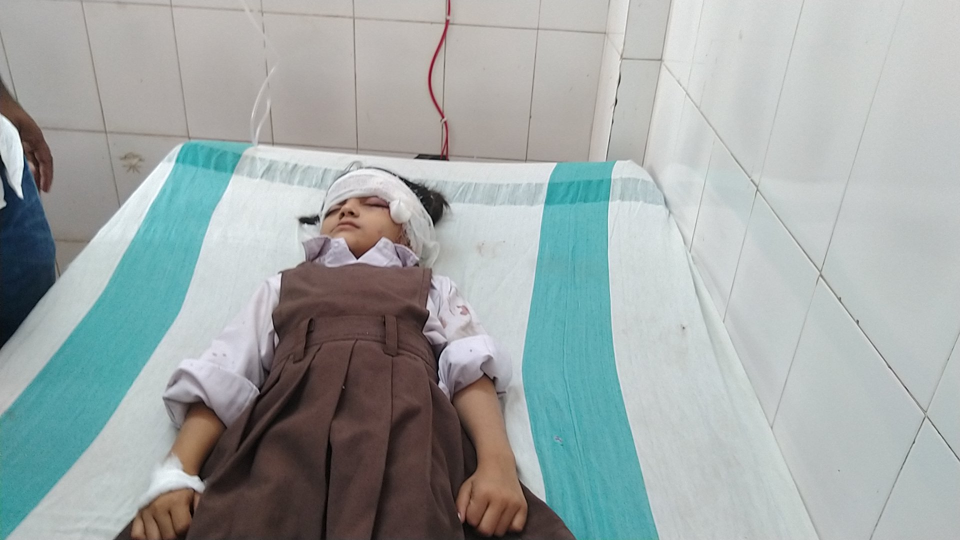रुद्रपुर नगर स्थित सेंट थॉमस स्कूल में छात्रों को लाने-जाने के लिए वाहन रखे गए हैं। बुधवार को रुद्रपुर कोतवाली क्षेत्र के महदहा गांव के रहने वाले चालक बिहारी यादव (50) पुत्र रामविलास स्कूल की टेम्पो लेकर जाते समय रुद्रपुर-नारायणपुर मार्ग पर सेमरौना गांव के समीप पहुंचा ही था कि टेंपो अनियंत्रित होकर पलट गई। टेम्पो में सवार छात्र युवराज यादव (6), अंशिका यादव (11), प्रियल यादव (5), आयुष्मान यादव (10), विजयलक्ष्मी (10), सत्यम सिंह (10), राज यादव (13) और चालक बिहारी यादव गम्भीर रूप से घायल हो गए। आसपास के लोगों ने घायलों को इलाज के लिए स्थानीय स्वास्थ्य केंद्र में भर्ती कराया। जहां से चिकित्सकों ने स्थिति गम्भीर देख जिला चिकित्सालय रेफर कर दिया। प्राथमिक उपचार के बाद जिला चिकित्सालय के चिकित्सक द्वारा आयुष यादव और युवराज को एम्बुलेस एडवांस लाइफ सपोर्ट एम्बुलेंस द्वारा मेडिकल टेकनीशियन श्रवन कुमार और चालक पिंटू कुमार और शालीन कुमार सिंह क्लस्टर मैनेजर एएलएस एम्बुलेंस सेवा के देख रेख में मेडिकल कॉलेज गोरखपुर भेजा गया ।