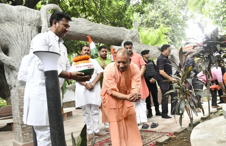 मुख्यमंत्री योगी ने यह बातें शुक्रवार को गोरखनाथ मंदिर में मेरी माटी मेरा देश कार्य्रकम के दौरान कही। उन्होंने मेरी माटी, मेरा देश कार्यक्रम का शुभारंभ करते हुए भाजपा महानगर इकाई के अध्यक्ष राजेश गुप्ता को गोरखनाथ मंदिर परिसर की पवित्र मिट्टी अमृत कलश में भरकर सौंपी। इस अवसर पर अपने संबोधन में मुख्यमंत्री ने कहा कि प्रधानमंत्री नरेंद्र मोदी के नेतृत्व में भारत ने अपनी आजादी का अमृत महोत्सव पूरी भव्यता और दिव्यता के साथ आयोजित किया। यह हम सबका सौभाग्य है कि आजादी के अमृत काल के प्रथम वर्ष में हम सबको नए भारत का दर्शन हो रहा है। पीएम मोदी ने नए भारत की 140 करोड़ की आबादी को आगामी 25 वर्ष की एक विस्तृत कार्ययोजना के साथ आगे बढ़ने का एक अवसर दिया है।