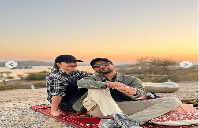 बॉलीवुड के फेमस सेलिब्रिटी कपल में से एक विक्की कौशल और कैटरीना कैफ हाल ही में वेकेशन मनाने के लिए मुंबई से दूर राजस्थान पहुंचे हैं। यहां दोनों जंगल सफारी का भरपूर आनंद ले रहे हैं।कैटरीना कैफ ने इस सफारी की कुछ तस्वीरें अपने आधिकारिक इंस्टाग्राम पर साझा भी की हैं। इन तस्वीरों में से एक तस्वीर में कैटरीना पति विक्की संग जंगल के बीचों-बीच बैठी नजर आ रही हैं। इस दौरान उन्होंने ब्लैक कलर की डांगरी पहनी हुई है। तो वहीं विक्की कैजुअल कुल में नजर आ रहे हैं। साथ ही उन्होंने कई जानवरों की भी तस्वीरें भी शेयर की हैं और कैप्शन में लिखा- इतना जादुई… मुझे लगता है कि यह मेरी पसंदीदा जगहों में से एक है।विक्की -कैट की इन तस्वीरों पर फैंस के साथ-साथ सेलेब्स भी जमकर प्रतिक्रिया दे रहे हैं।
