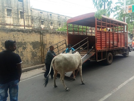 लखनऊ(हि.स.)। नगर निगम इस समय शहर में छुट्टा जानवरों को पकड़ने का अभियान चला रहा है। नगर निगम कर्मी गुरुवार को लखनऊ विश्वविद्यालय के निकट पशुपालन विभाग के निदेशालय वाले मार्ग पर कैटल कैचिंग वाहन को लेकर पहुंचें। वहां विश्वविद्यालय के कर्मचारी की गाय बिना क्लीप के ही दिखायी दी और उसे उन्होंने रस्सा डाल कर बांधा। गाय लेकर चले गए। उल्लेखनीय है कि नगर निगम के प्रवर्तन विभाग के कर्मचारी सड़कों पर बिना टैग के घूमने वाली गाय को उठाने का कार्य कर रहे हैं।