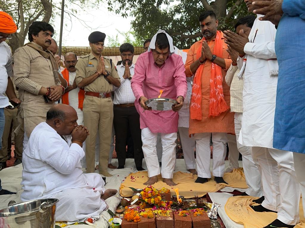 मऊ( हि. स)। अपने गृह जनपद में पहुंचने के बाद प्रदेश के नगर विकास एवं ऊर्जा मंत्री एके शर्मा ने मंगलवार को नगर पालिका परिषद मऊ के अंतर्गत बड़ागांव में लगभग आठ करोड रुपए की लागत से बनने वाले सामुदायिक केंद्र कल्याण मंडप के निर्माण कार्य की पूजा अर्चना करके शिलान्यास किया। इस दौरान जिले के आला अधिकारी मौके पर तैनात दिखे।