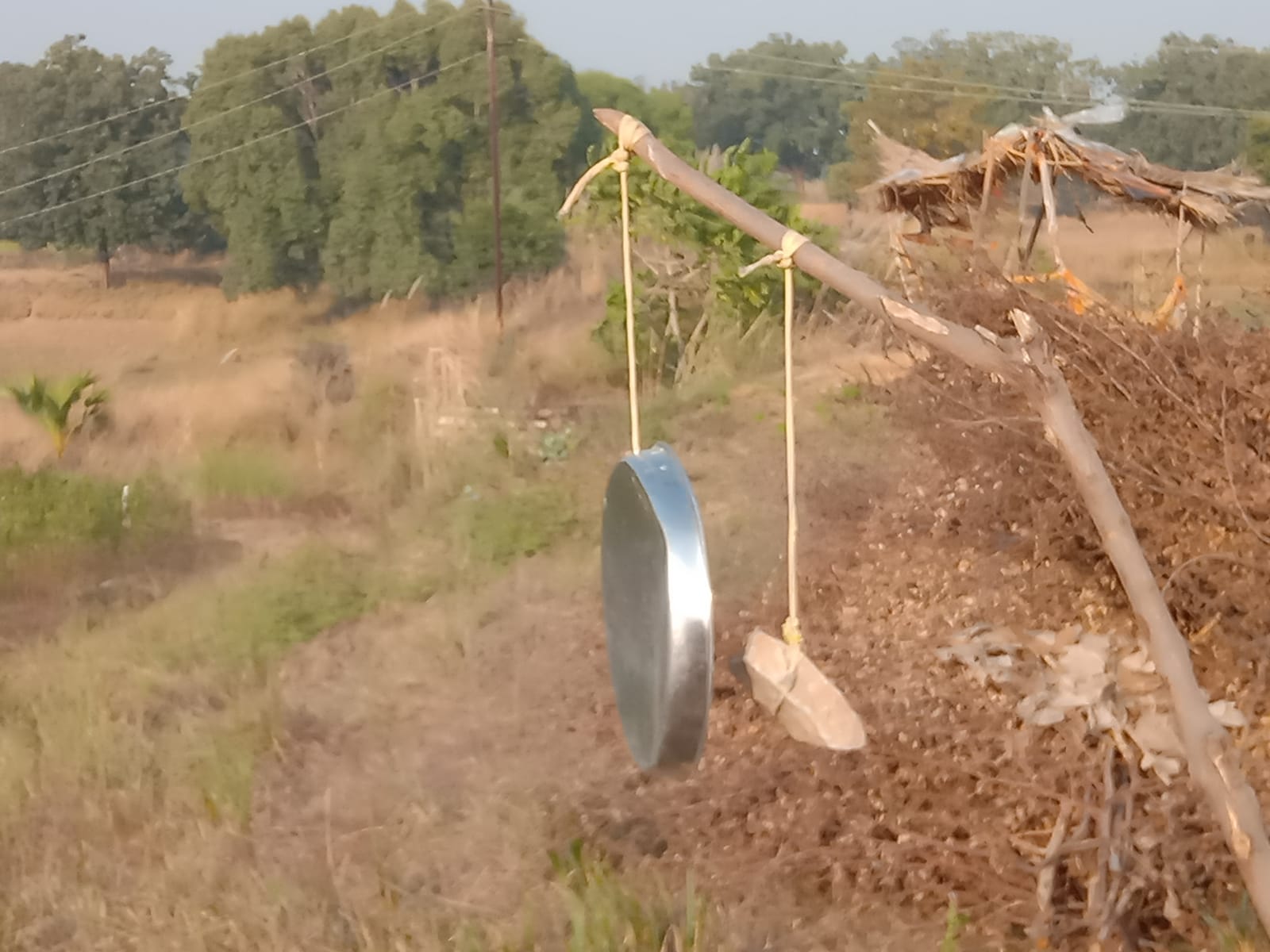 जिले में असंख्य बेसहारा पशु हैं जो किसानों की फसलों को काफी नुकसान पहुंचाते हैं। ऐसे में अपनी फसल बचाने के लिए किसानों ने देशी तकनीक इजाद की है। किसानों का कहना है कि बेसहारा पशुओं से फसल बचाने के लिए रात भर जागना पड़ता है। इसको लेकर प्रशासनिक अधिकारियों से शिकायत की गई, लेकिन अब तक कोई ध्यान नहीं दिया गया। छनवर के विजयपुर गांव निवासी किसान गामा सोनकर बटाई पर 10 बीघे में खेती करते हैं। उन्होंने गेहूं, मटर, सरसों और अरहर की खेती की है। खेत के चारों तरफ जंगली कटीले झाड़ से बाड़ लगाकर रखवाली करने के बावजूद पशु खेत में घुस जाते हैं और फसल बर्बाद कर देते हैं। बेसहारा पशुओं से परेशान किसान गामा सोनकर को आइडिया आया कि अगर खेत में घंटी लगा दी जाए तो उसकी आवाज सुनकर ये पशु खेतों के आसपास नहीं फटकेंगे। एक तरफ थाली और दूसरी तरफ पत्थर का टुकड़ा अलग-अलग रस्सी से बांधकर लकड़ी के सहारे एक साथ लटका दिया गया है। हवा चलने पर दोनों के आपस में टकराने से घंटी जैसे आवाज उत्पन्न होती है। इस आवाज को सुनकर पशु खेतों से भाग जाते हैं। इससे न पशुओं को नुकसान होगा और न ही किसान को रातभर जागकर अपनी फसल की रखवाली करनी पड़ेगी। यह बेहद आसान तरीका है। इससे किसानों पर अतिरिक्त बोझ भी नहीं पड़ेगा।