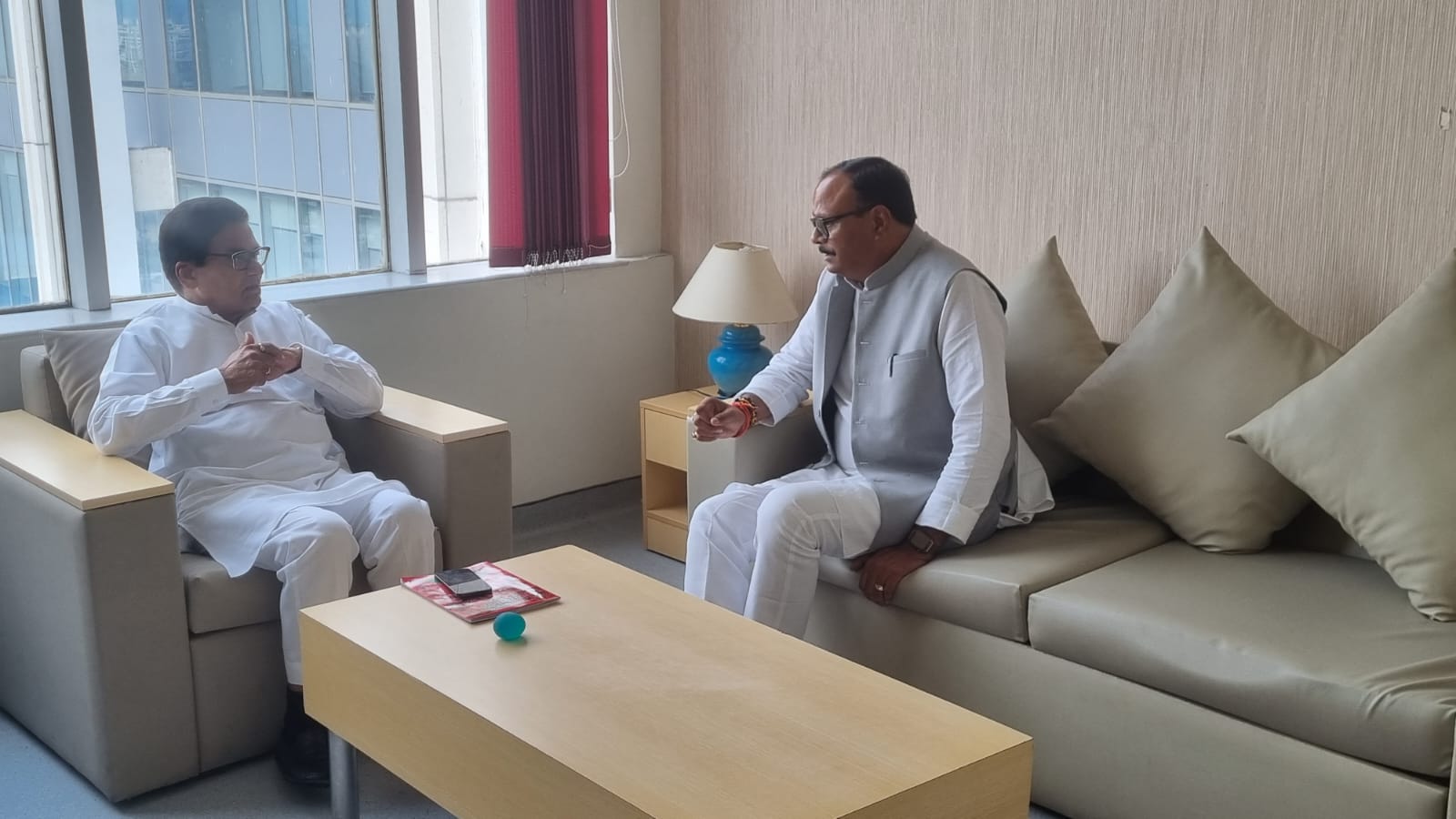 उत्तर प्रदेश के उपमुख्यमंत्री ब्रजेश पाठक आज मेदांता अस्पताल पहुंचे, जहां उन्होंने नेता जी मुलायम सिंह यादव का हाल जाना। इस दौरान उपमुख्यमंत्री ने परिवार के सदस्यों और डॉक्टरों से मुलाकात कर नेताजी के स्वास्थ्य की जानकारी ली। इसके बाद उपमुख्यमंत्री ब्रजेश पाठक सपा नेता रामगोपाल यादव से मिले। मुलाकात के बाद रामगोपाल यादव का बयान सामने आया हैं, जिसमें रामगोपाल ने यूपी सरकार का आभार जताया है। कहा कि ‘नेताजी सबके नेता हैं, ऐसे समय में उप्र की सरकार साथ खड़ी है, इससे राजनीति में बेहतर संदेश जाता है।’