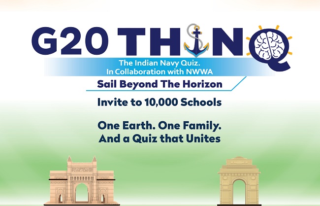 भारतीय नौसेना की अंतरराष्ट्रीय क्विज़ ‘जी-20 थिंक’ का आयोजन जी-20 सचिवालय, भारतीय नौसेना और नौसेना कल्याण और कल्याण एसोसिएशन के तत्वावधान में किया जा रहा है। क्विज की अवधारणा राष्ट्रीय और अंतरराष्ट्रीय प्रतियोगिता के रूप में की गई है, जो विभिन्न क्षेत्रों और भौगोलिक क्षेत्रों के युवाओं को एक साथ लाकर उन्हें ‘वसुधैव कुटुंबकम’ की भावना में स्थायी मित्रता बनाने में सक्षम बनाती है। यह प्रतियोगिता कक्षा 9 से 12 के स्कूली बच्चों के लिए है। प्रतियोगिता के लिए पंजीकरण 31 जुलाई को बंद होंगे।