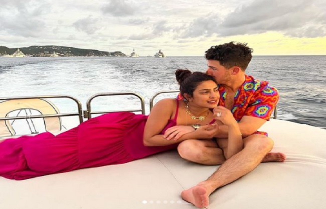 बॉलीवुड की देसी गर्ल प्रियंका चोपड़ा ने अपने आधिकारिक इंस्टाग्राम पर न्यू ईयर सेलिब्रेशन की कुछ तस्वीरें साझा की हैं, जो सोशल मीडिया पर वारयल हो रही हैं। इनमें से पहली तस्वीर में प्रियंका अपने पति निक जोनस के साथ समंदर में एक बोट पर सवार हैं। तस्वीर में प्रियंका ने पिंक कलर की मैक्सी ड्रेस पहनी है, तो वहीं निक कलरफुल शर्ट में नजर आ रहे हैं। पीसी निक जोनस की गोद में सिर रखे हुए नजर आ रही हैं। दोनों की यह तस्वीर बहुत रोमांटिक और प्यारी है।