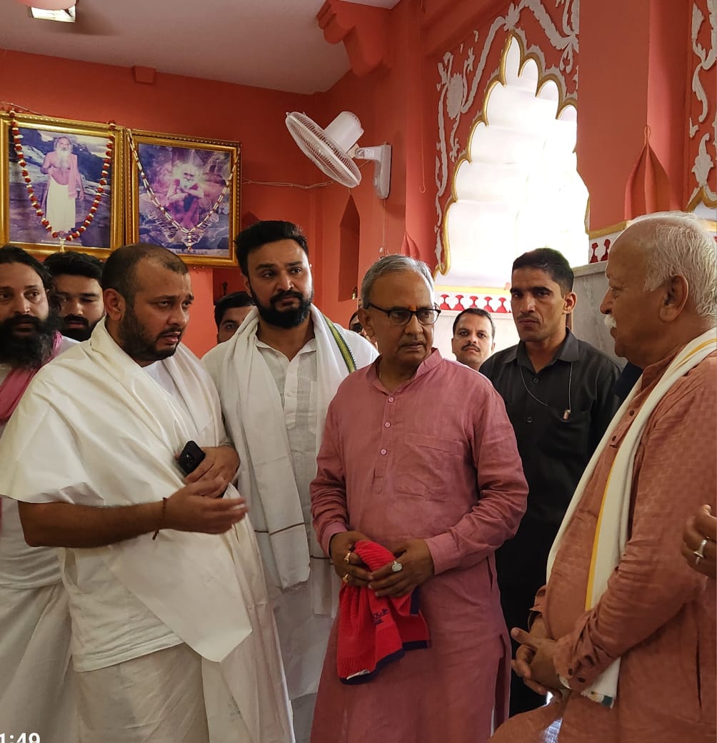 आरएसएस प्रमुख मोहन भागवत ने सबसे पहले परमहंस आश्रम परिसर में मौजूद धुनी पर मत्था टेका और पूजन-अर्चन किया। परिसर में मौजूद लोगों से बातचीत भी की। इसके बाद संघ प्रमुख विश्राम करने चले गए।
