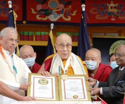 हिमाचल के राज्यपाल राजेंद्र विश्वनाथ आर्लेकर ने परम पावन दलाई लामा को विश्व में दया, एकता, अहिंसा पर जोर देने के लिए यह शांति पुरस्कार दिया है। यह कार्यक्रम एक फाउंडेशन की ओर से आयोजित था, जिसमें हिमाचल प्रदेश के गणमान्य लोगों की उपस्थिति रही।