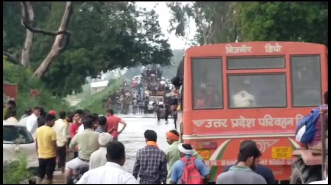 बिजनौर( हि.स.)। पहाड़ी इलाकों में हो रही बारिश का असर लगातार मैदानी क्षेत्रों में पड़ रहा है। ऐसा ही बिजनौर-हरिद्वार मार्ग पर मालन नदी में फिर से जलस्तर बढ़ने का असर देखा जा रहा है। यहां पर नदी में बढ़े जलस्तर से रपटा मार्ग पर आवागमन ठप हो गया है। नदी के दोनों ओर वाहनों की लम्बी-लम्बी लाइनें लगी हुई हैं।