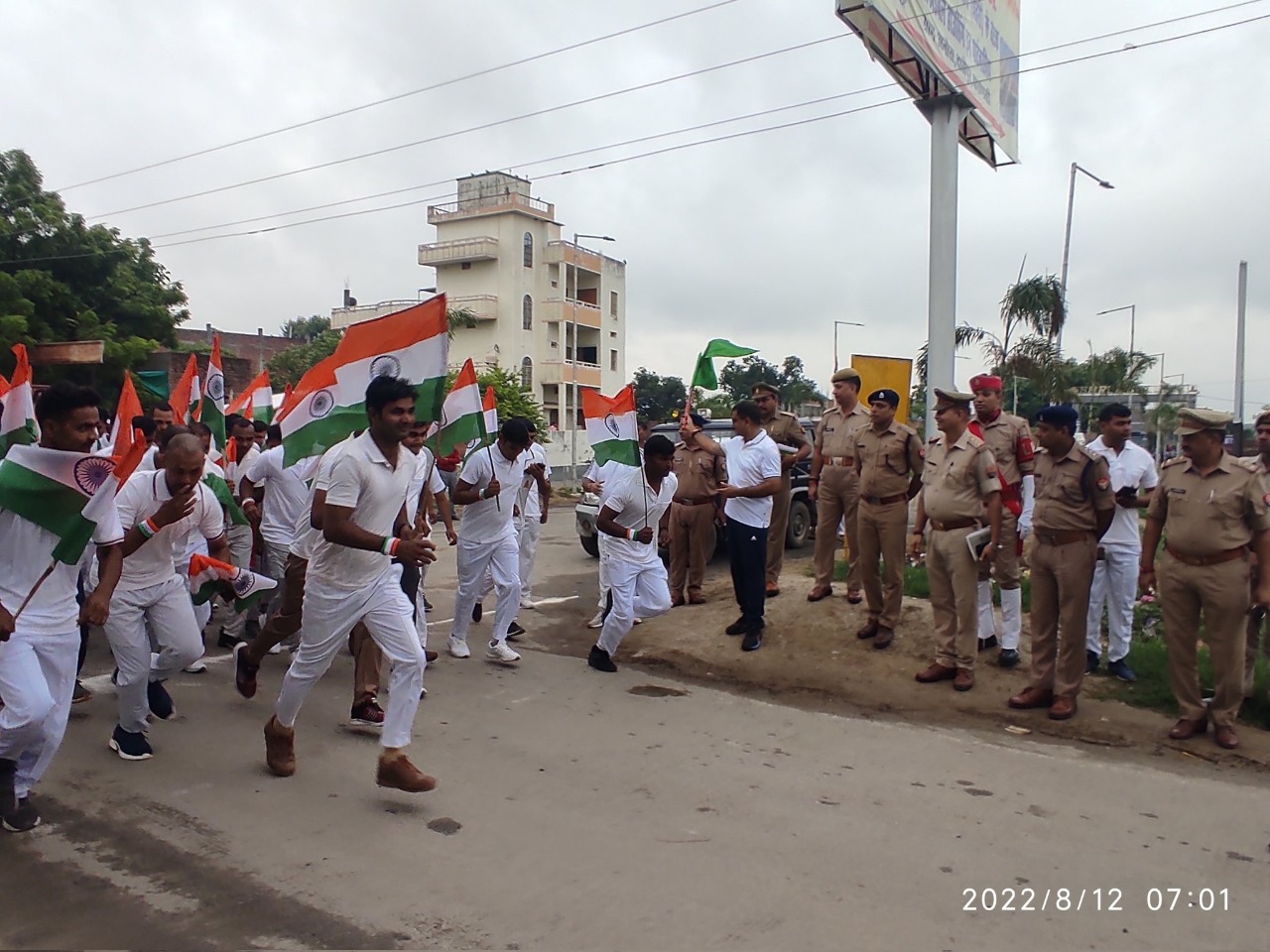 वाराणसी(हि.स.)। आजादी के अमृत महोत्सव में जिले के ग्रामीण अंचल में शुक्रवार को पांच किमी0 तिरंगा मैराथन दौड़ का आयोजन किया गया। मैराथन में 100 पुलिसकर्मियों ने हाथ में राष्ट्रीय ध्वज लेकर प्रतिभाग किया।