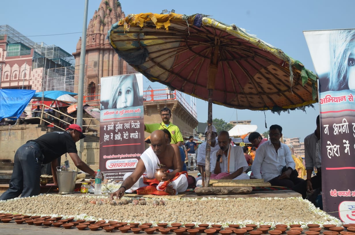 इसके बाद अलग- अलग 15 हजार अनाम, ज्ञात और अज्ञात बेटियों के पिंड को स्थापित कर विधिपूर्वक आह्वान कर पूजन अर्चन कर उनके मोक्ष की कामना की। फिर गंगा में पिंड विसर्जन के बाद सभी को जल अर्पित कर तृप्त होने की कामना की। वैदिक परंपरा के अनुसार श्राद्ध कर्म और जल तर्पण कर डॉ. संतोष ओझा ने बताया कि पिछले दस वर्षों में 82 हजार अजन्मी बेटियों का श्राद्ध कर चुके हैं। उन्होंने बताया कि संस्था उन अजन्मी बेटियों की आत्मा की शांति के लिए श्राद्ध कर्म करती है। जिनकी हत्या उन्हीं की मां के कोख में उन लोगों ने ही करा दी जिसे हम सब माता-पिता या परिजन कहते हैं।