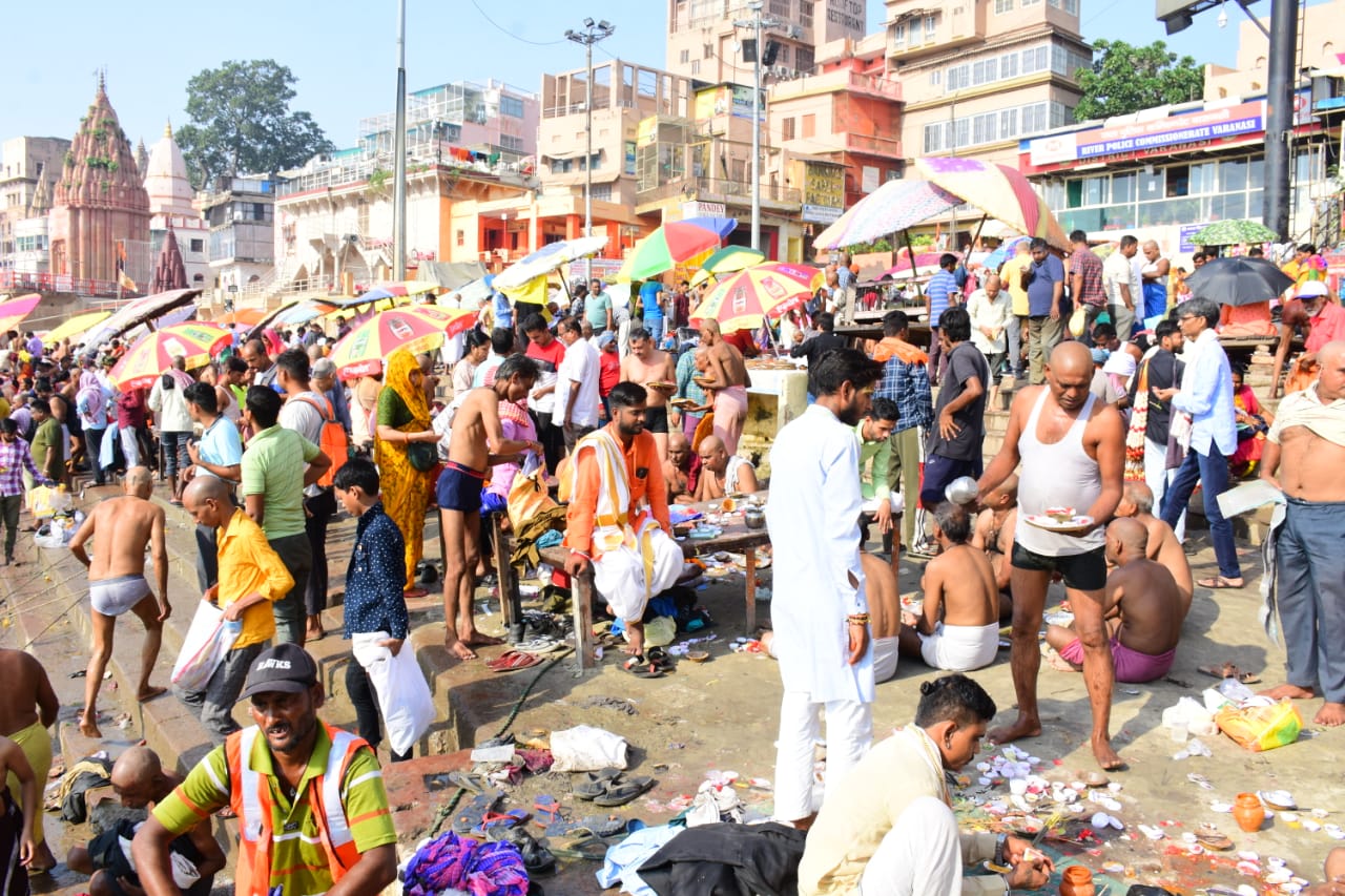 गंगा नदी के सभी घाटों पर पिंडदान करने वालों की भीड़ भोर से ही उमड़ी। सिंधिया घाट, दशाश्वमेध घाट, मीरघाट, अस्सी घाट, शिवाला घाट, राजाघाट,पंचगंगा पर लोगों की सर्वाधिक भीड़ रही। पिशाचमोचन स्थित कुंड पर भी लोगों की भीड़ पिंडदान के लिए उमड़ती रही। श्रद्धा भाव के साथ मुंडन कराकर गंगा स्नान के बाद लोगों ने तर्पण और पिंडदान किया। जिनके परिजनों की अकाल मृत्यु हुई थी। उन्होंने ऐसे परिजनों और पूर्वजों के निमित्त पिशाच मोचन पर पिंडदान, तेल और घोड़ा दान किया।
