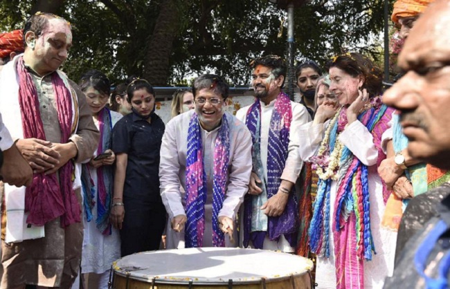 गोयल ने बुधवार को ट्विट कर कहा कि ”दोस्ती के रंग! अमेरिकी वाणिज्य मंत्री जीना रायमोंडो और उनके सहयोगियों का रक्षा मंत्री राजनाथ सिंह के आवास पर होली समारोह में शामिल होना अद्भुत है।” दरअसल अमेरिकी वाणिज्य मंत्री भारत के चार दिवसीय दौर पर हैं।