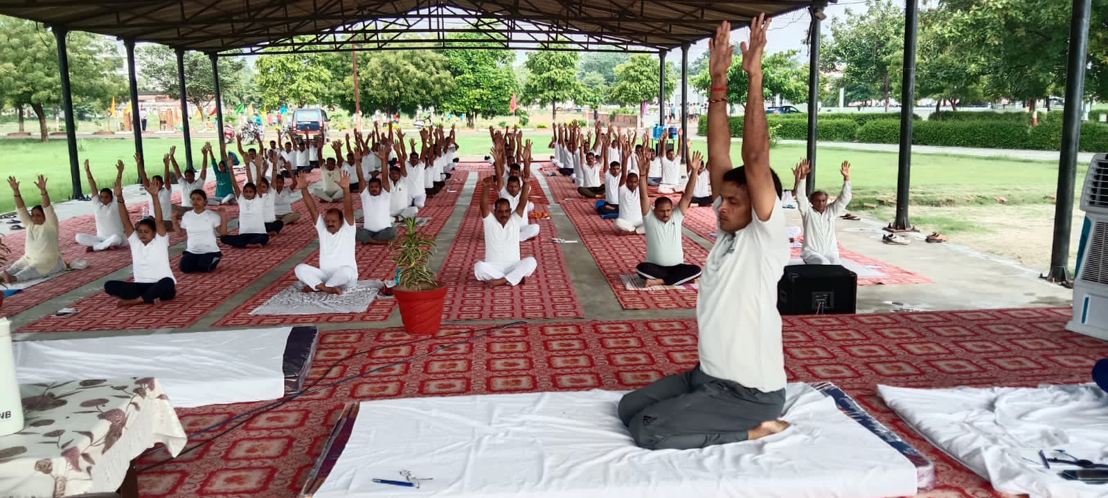 पुलिस लाइन में आयोजित 5 दिवसीय “आर्ट आफ लिविंग” में मिलन गुरु जी, प्रशिक्षु आईपीएस अरुण कुमार सिंह, क्षेत्राधिकारी सदर धनंजय मिश्रा, क्षेत्राधिकारी मोहम्दाबाद गोहना अजय विक्रम सिंह, क्षेत्राधिकारी घोसी उमाशंकर उत्तम जी, प्रतिसार निरीक्षक रमाकांत पांडे व योग शिक्षक भानु मिश्रा के साथ ही सैकड़ों की संख्या में पुलिस जवानों व अधिकारियों ने प्रतिभाग किया।