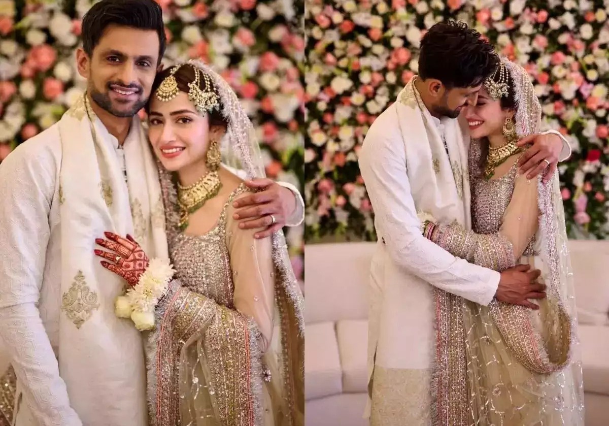 क्रिकेटर ने सुनहरे कढ़ाई वाले शॉल के साथ सफेद शेरवानी पहनी थी जबकि दुल्हन ने हरे और सोने के आभूषणों के साथ बेज रंग का लहंगा पहना था। घोषणा के तुरंत बाद सना जावेद ने अपना इंस्टाग्राम बायो बदलकर “सना शोएब मलिक” कर लिया है।