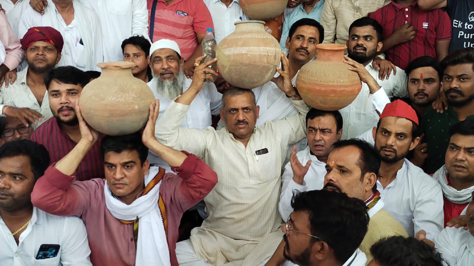 शहर के कई ऐसे इलाके हैं जहां पर बीते कुछ दिनों से पानी आपूर्ति को लेकर वहां रहने वाले परिवारों को काफी दिक्कतों का सामना करना पड़ रहा है। कुछ इलाके ऐसे भी हैं जहां पर पानी बहुत गंदा आ रहा है। जिसको लेकर शहर के सपा विधायकों द्वारा कई बार अधिकारियों को पत्राचार के माध्यम से अवगत कराया गया। सुनवाई ना होने के कारण आज सपा के तीनों विधायक कार्याकर्ताओं के साथ इकट्ठा होकर जलकल के मुख्यालय बेनाझावर पहुंचे। जहां मुख्य गेट पर सभी धरने पर बैठ गए। प्रदर्शन के दौरान सपाईयों ने कहा कि जब तक संबंधित अधिकारी या जीएम उचित आश्वासन नहीं देंगे, तब तक वह धरने पर बैठे रहेंगे। धरने के दौरान सभी विधायक अपने सिर पर खाली मटका रखकर प्रदर्शन करते रहे, जो वहां आने जाने वाले लोगों के लिए आकर्षण का केंद्र था।