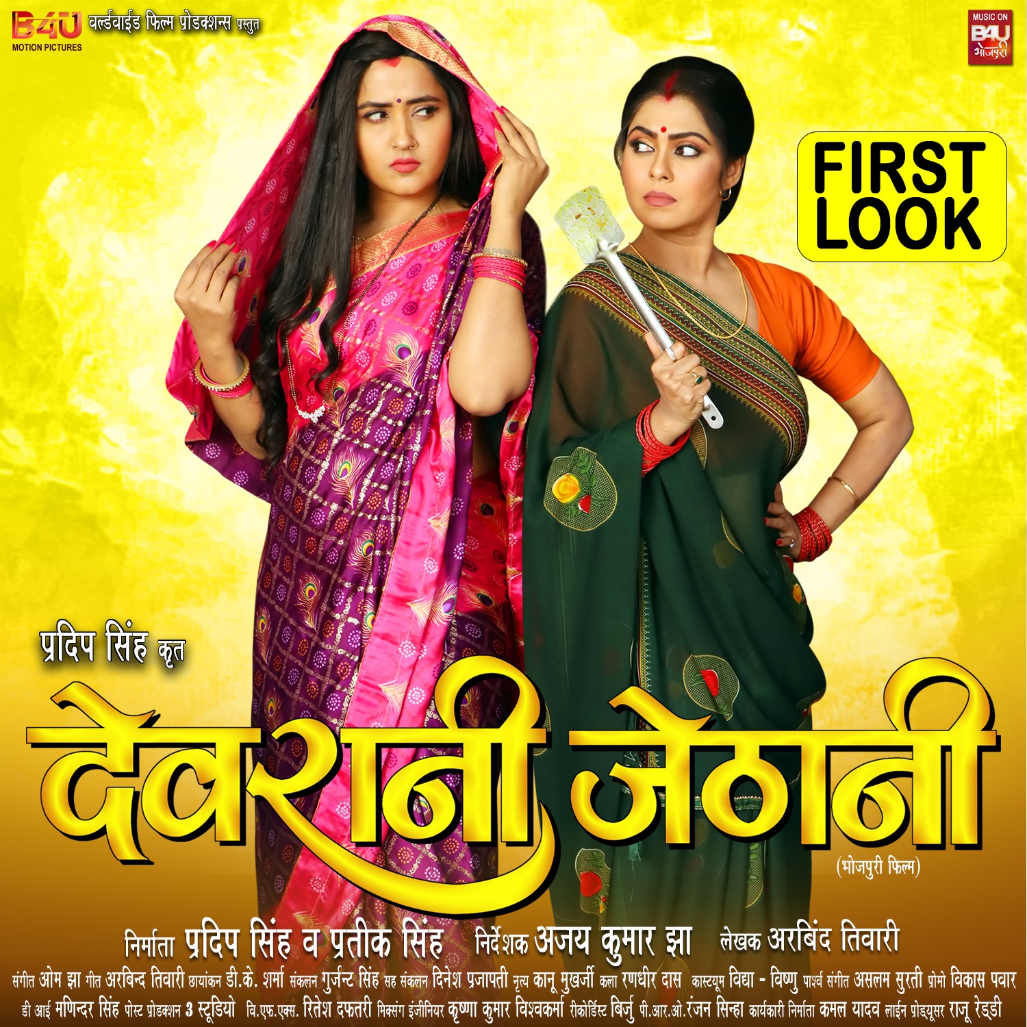 बीफोरयू मोशन पिक्चर्स और वर्ल्ड वाइड फिल्म प्रोडक्शन प्रस्तुत भोजपुरी फिल्म ‘देवरानी जेठानी’ का धांसू फर्स्ट लुक आउट कर दिया गया है। प्रदीप सिंह कृत इस फिल्म के फर्स्ट लुक में भोजपुरी की दो दिवा ‘देवरानी जेठानी’ की भूमिका में नजर आ रही हैं। यानि इस फिल्म की मुख्य भूमिका में काजल राघवानी और रिंकू घोष मुख्य भूमिका में हैं। फिल्म की कहानी घर – परिवार पर आधारित है। फिल्म की जोनर सामाजिक है और इसमें पारिवारिक ड्रामा दर्शकों को देखने को मिलने वाली है। फिल्म की पहली झलक दर्शकों में इस फिल्म के लिए उत्सुकता पैदा करने वाली है। इस वजह से रिलीज के बाद फिल्म का फर्स्ट लुक सोशल मीडिया पर वायरल भी होने लगा है।
