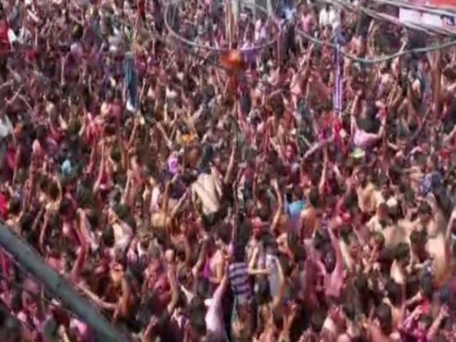 प्रयागराज(हि.स.)। रंगों का पर्व होली बड़े धूमधाम एवं परम्परागत ढंग से गुरुवार को मनाया गया। ऐतिहासिक लोकनाथ चौराहे पर हजारों की संख्या में होलियारों ने डीजे की धुन एवं पानी के फौव्वारों के बीच एक-दूसरे का कपड़ा फाड़ते हुए जमकर मस्ती की। अब शुक्रवार को प्रसिद्ध ठठेरी बाजार की होली खेली जाएगी, जहां लोगों को जाने की मनाही है।