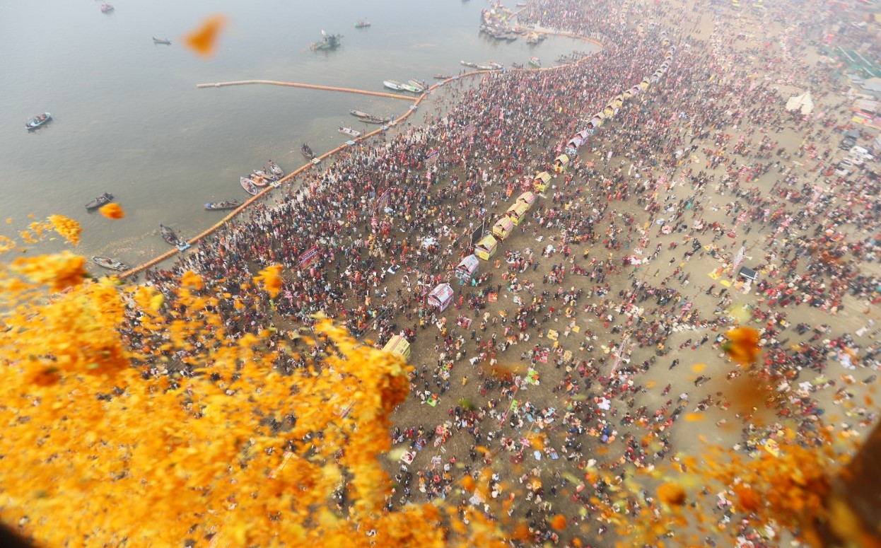 त्रिवेणी में डुबकी लगाकर पावन रेत पर दान, पुण्य और पूजा के लिए लीन श्रद्धालुओं पर हेलीकाप्टर से पुष्पों की पंखुड़ियों की वर्षा ने पूरे संगम क्षेत्र को अकल्पनीय अनुभूति से सराबोर कर दिया। साधु, संत और श्रद्धालु योगी सरकार द्वारा माघ मेला के आयोजन को दिए गए इस भव्य और दिव्य स्वरूप के लिए उन्हें साधुवाद दे रहे थे।