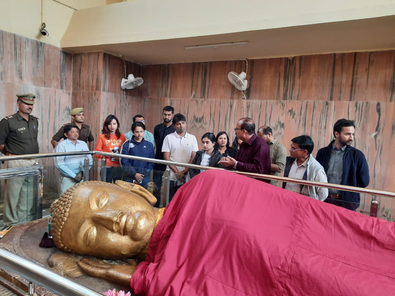 उप्र प्रशासन एवं प्रबंधन अकादमी लखनऊ के तत्वावधान में 2021 बैच के उत्तर प्रदेश संवर्ग के 16 प्रशिक्षु अधिकारी उप्र अध्ययन भ्रमण के क्रम में यहां आए थे।भ्रमण की शुरुआत ग्रुप लीडर प्रशिक्षु अधिकारी हिमांशु गुप्त व जागृति अवस्थी के नेतृत्व में महापरिनिर्वाण बुद्ध मंदिर से हुई। यहां उन्होंने बुद्ध प्रतिमा पर चीवर चढ़ाकर पूजा किया। बुद्ध प्रतिमा व स्मारकों के बारे में लेखपाल नीलेश रंजन राव व पर्यटक सूचना अधिकारी डा. प्राण रंजन ने जानकारी दी। भंते उपालि ने पूजा कराई।
