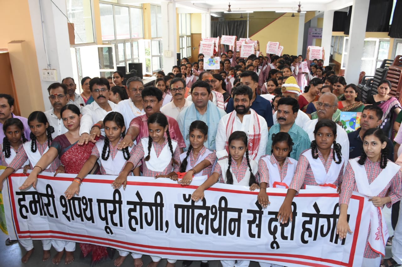 वाराणसी(हि.स.)। सिंगल यूज़ प्लास्टिक के खिलाफ सोमवार को मैदागिन स्थित हरिश्चंद्र बालिका इंटरमीडिएट कॉलेज परिसर में जागरूकता अभियान चलाया गया। सामाजिक संस्था सुबह-ए- बनारस क्लब एवं लक्ष्मी हॉस्पिटल के बैनर तले आयोजित अभियान में प्रदेश के आयुष, खाद सुरक्षा एवं औषधि प्रशासन राज्य मंत्री डॉ दयाशंकर मिश्र (दयालु) भी शामिल हुए।