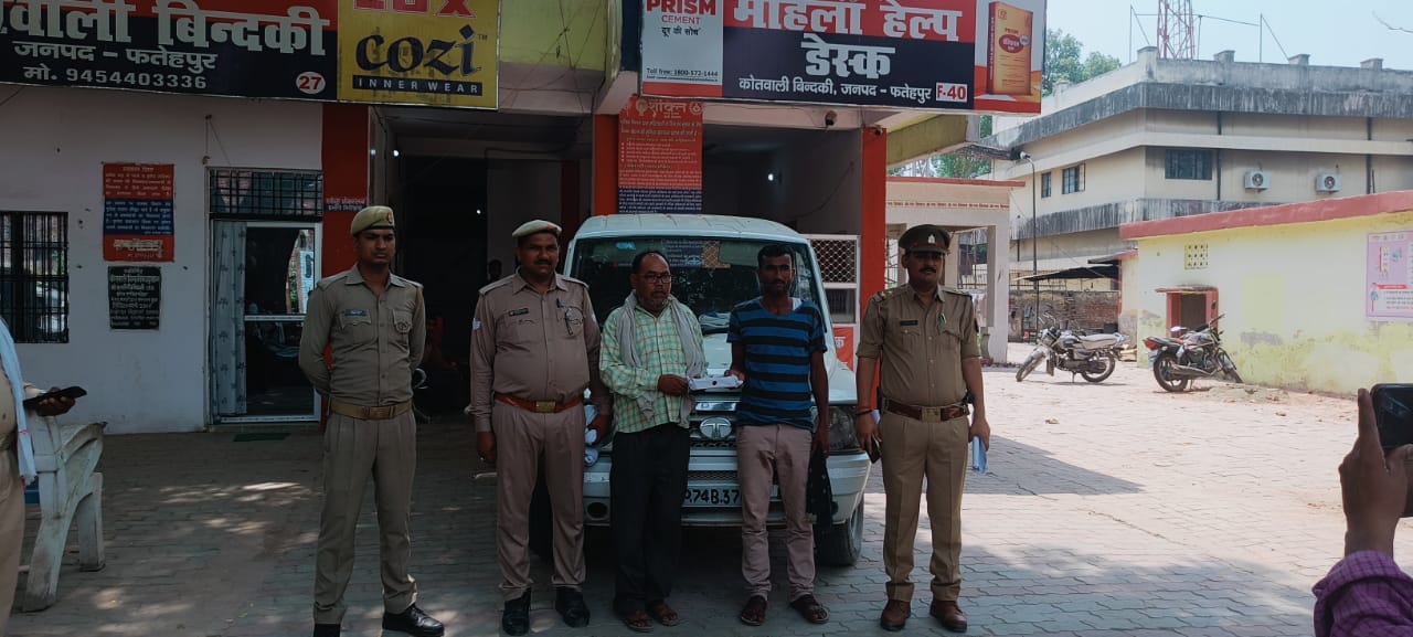 बिन्दकी कोतवाली पुलिस ने क्षेत्राधिकारी योगेन्द्र सिंह मलिक व कोतवाली प्रभारी रवीन्द्र श्रीवास्तव के नेतृत्व में अपराध नियंत्रण के लिए चलाये जा रहे अभियान के तहत आज एक अन्तरजनपदीय गिरोह का भड़ाफोड़ किया है। मलिक ने बताया कि पीड़ित कमल यादव ने लिखित शिकायत करते हुए बताया कि उसकी पत्नी व बच्चे बांदा जाने के लिए कस्बे के ललौली चौराहे पर बस का इंतजार कर रहे थे तभी एक टाटा स्पेशियो ड्राईवर आकर मेरी पत्नी से बोला कि मैं बांदा जा रहा हूँ, आपको छोड़ दूँगा। मेरी पत्नी उस पर विश्वास कर गाड़ी में बैठ गयी। गाड़ी में चोर गैंग के अन्य सदस्य भी बैठे थे। रास्ते में मेरी पत्नी के बैग से चैन खोलकर सोने का हार निकाल लिया। जिसकी कीमत करीब 1.25 लाख रुपये थी। शिकायत को गम्भीरता से लेते हुए सीसीटीवी फुटेज व मुखबिर की जानकारी पर एक टाटा स्पेशियो UP74B 3705 चिन्हित कर छानबीन कर चोर गैंग को पकड़ने में पुलिस को कामयाबी मिली है।