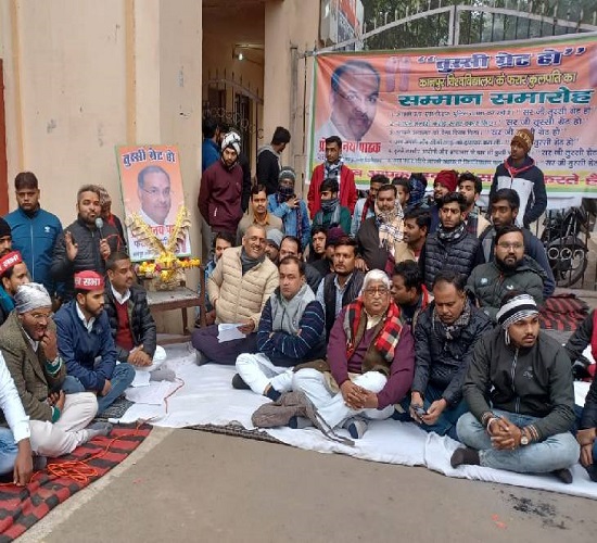 सपा विधायक का कहना है कि प्रो.पाठक दो माह से फरार हैं। इस दौरान पद पर कायम रहते हुए वेतन भी पा रहे हैं। धरने में कैंट विधायक मो. हसन रूमी और आरएलडी के पदाधिकारी भी शामिल हैं। राज्यपाल को ज्ञापन भी सौंपा जाएगा।