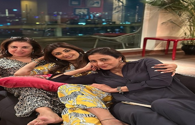तस्वीर में फराह खान, शिल्पा शेट्टी और तब्बू एक फ्रेम में नजर आ रही हैं और एक-दूसरे की कंपनी में काफी कंफर्टेबल लग रही हैं। सोशल मीडिया पर यह तस्वीर वायरल हो रही है। वहीं इस तस्वीर पर फैंस एवं सेलिब्रिटी जमकर प्रतिक्रिया दे रहे हैं।