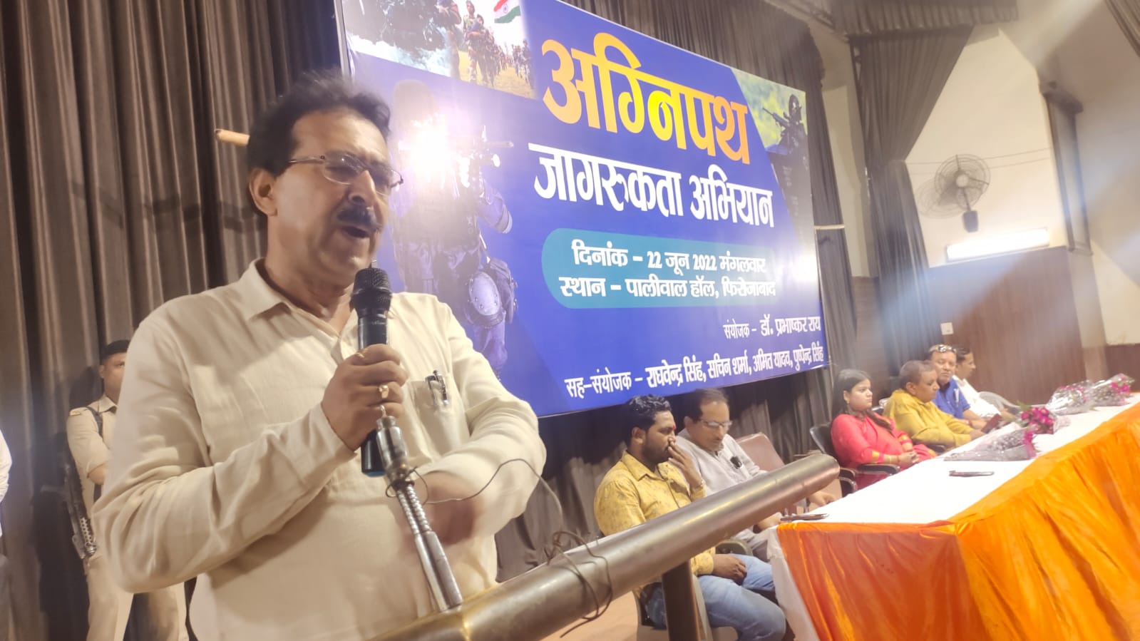 मंच पर कौशल किशोर उपाध्याय, यशपाल यश, हरिओम झा मौजूद थे। कार्यक्रम में सचिन शर्मा सहित बड़ी संख्या में युवा मौजूद थे, जिन्होंने अग्निपथ योजना का समर्थन किया।