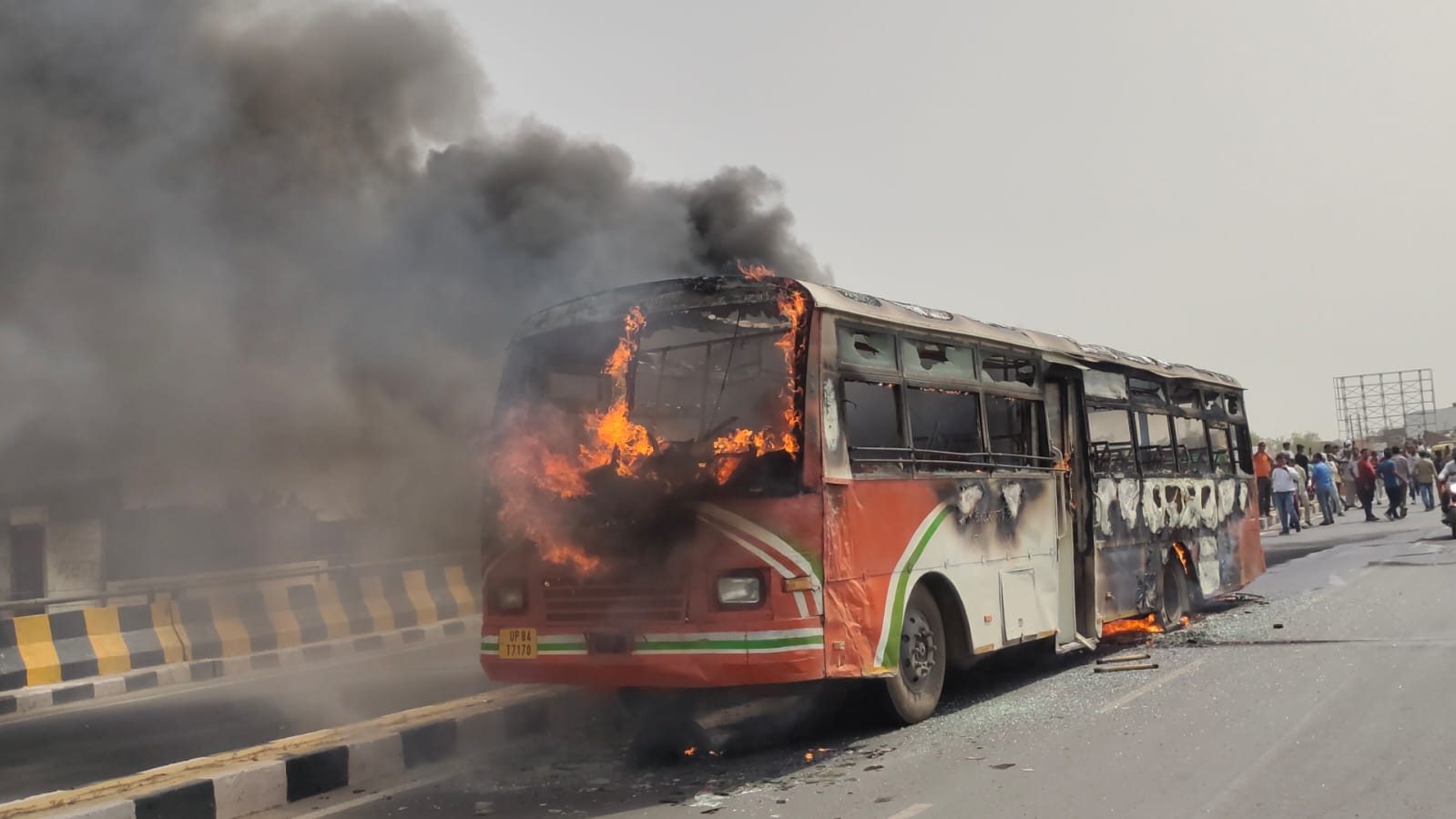 बेबर डिपो की एक रोडवेज बस मंगलवार को आगरा से सवारियां लेकर वापस बेबर जा रही थी। बस जैसे ही फिरोजाबाद शहर के थाना उत्तर क्षेत्र अन्तर्गत ओवरब्रिज पर पहुंची तभी अचानक बस में भीषण आग लग गई। बस में आग लगने से सवारियों में हड़कम्प मच गया। बस के चालक व परिचालक ने अपनी सूझबूझ का परिचय देते हुए तत्काल बस में बैठी सवारियों को बस से नीचे उतारा। इधर बस से आग की लपटें उठती देख लोगों की भीड़ जमा हो गई। कुछ समय के लिए आवागमन ठप हो गया। सूचना मिलते ही थाना पुलिस के साथ फायर बिग्रेड की गाड़ियां मौके पर पहुंची और कड़ी मशक्कत के बाद बस में लगी आग पर काबू पाया लेकिन तब तक बस पूरी तरह जलकर खाक हो गई।