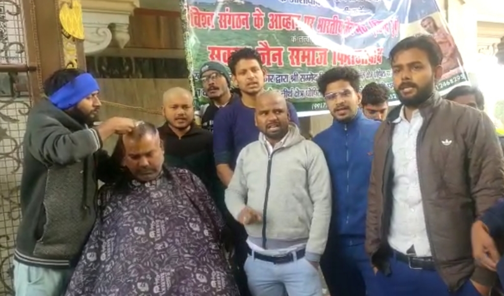 देश में चल रहे सबसे बड़े जैन तीर्थ सम्मेद शिखर बचाओ आंदोलन के तहत शनिवार को जैन समाज के युवा एकत्रित होकर श्री महावीर जिनालय सुभाष चौराहे पर पहुंचे। जहां उन्होंने सम्मेद शिखर बचाने को मांग करते हुए विरोध स्वरूप अपने सिर का मुंडन कराया।