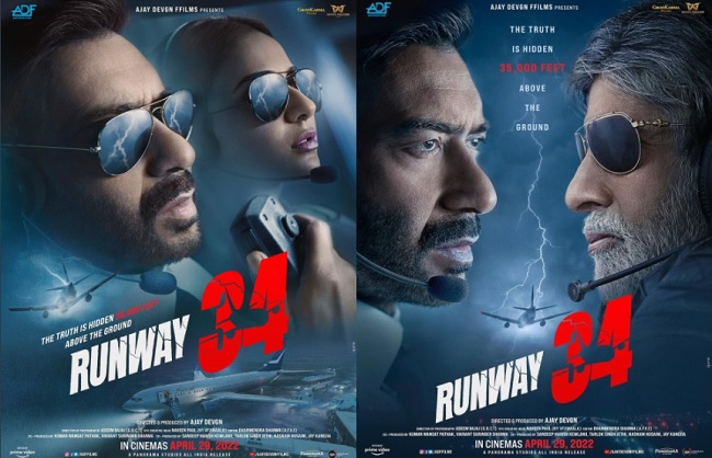 अमिताभ बच्चन, अजय देवगन और रकुलप्रीत की आगामी फिल्म ‘रनवे 34 ‘ के दो मोशन पोस्टर्स शनिवार को मेकर्स ने जारी कर दिए हैं। इन मोशन पोस्टर्स को अजय देवगन ने सोशल मीडिया पर फैंस के साथ साझा किया है। इनमें से एक में अमिताभ बच्चन की आवाज में एक बैकग्राउंड डायलॉग सुना जा सकता है, जिसमें वह कहते हैं-‘ अगर, मगर, शायद, लेकिन…. 450 यात्रियों की सलामती इन चार शब्दों पर छोड़ दें !’ इसके बाद अमिताभ फुल एक्शन में नजर आते हैं।